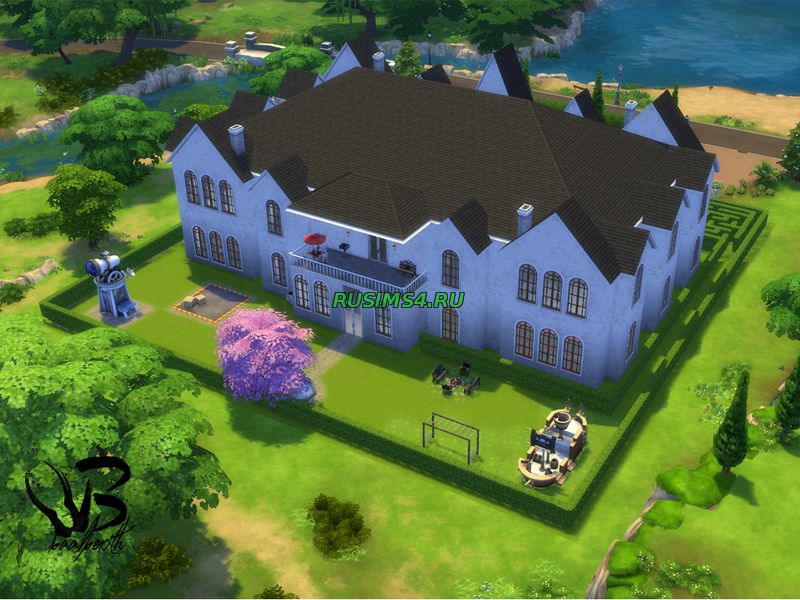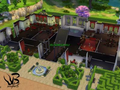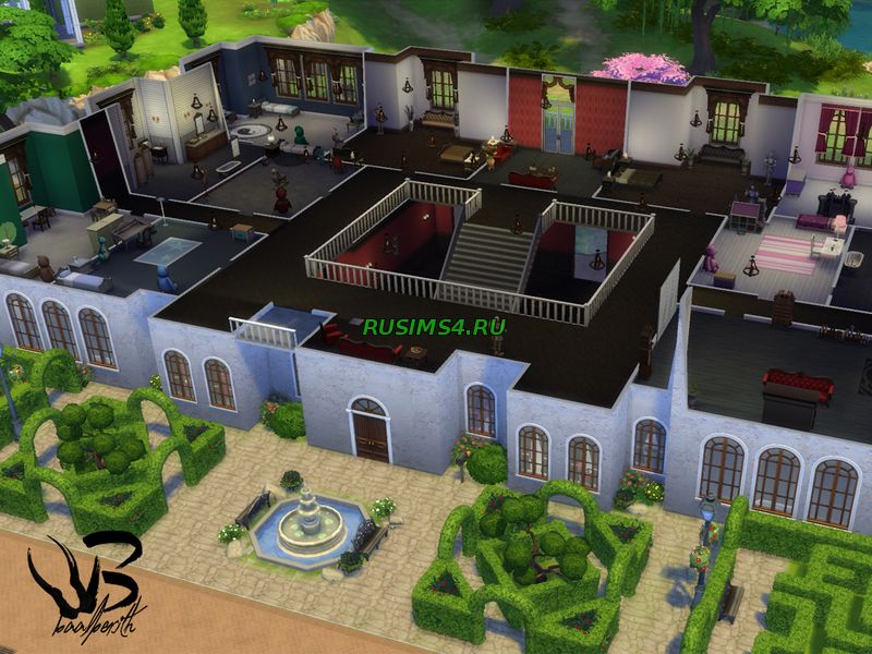 это самый настоящий замок, очень просторный дом, в здании на первом этаже имеется бассейн, по среди дома стоит большая деревянная лестница, которая соединяет все этажи, у входа в дом имеется свой фонтан, внутри большое количество различных по назначению комнат