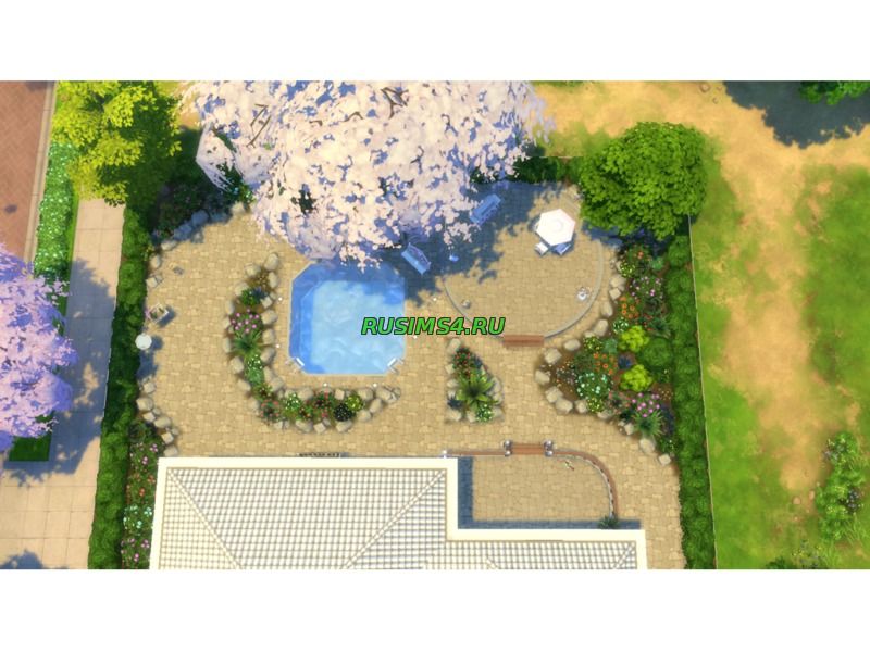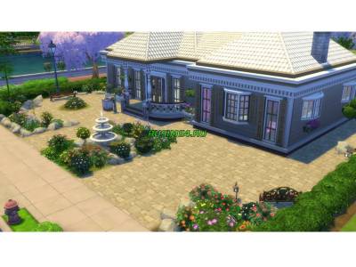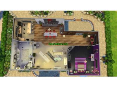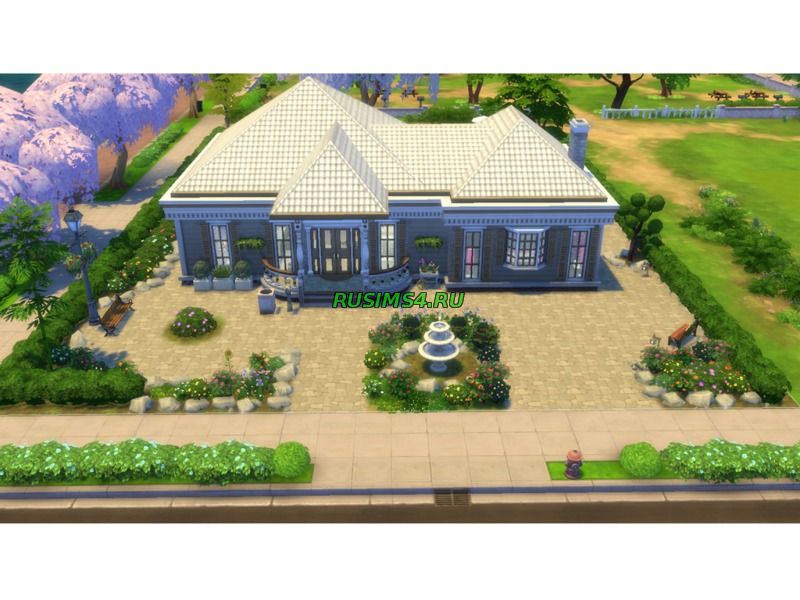 большой одноэтажный дом, сделан из особого, красивого кирпича серого цвета, рядом с домом присутствует фонтан, так-же имеется бассейн и беседка, внутри дома хай-тек обстановка, угловая ванна в туалете, спальня розового цвета