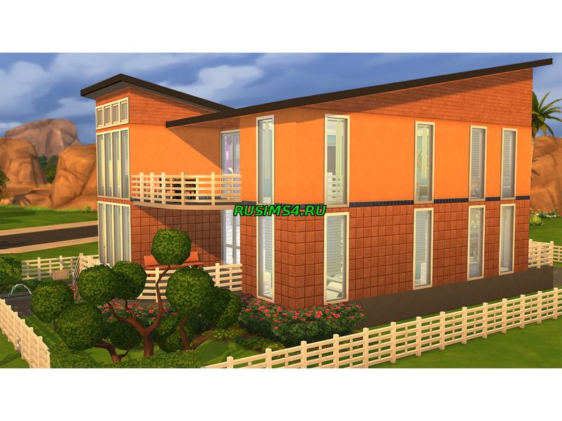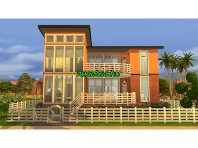 Представленный дом прекрасно подходит для больших семей.Оранжевая раскраска и большие окна придает ему современность.Внутри можно легко заблудиться из-за большого количества комнат. Так же на участке имеются два бассейна,один с входной стороны дома тот который поменьше и большой с задней стороны дома.