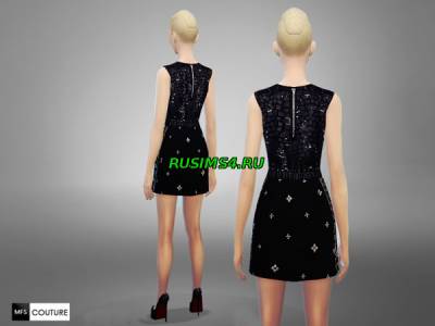 Новое черное платье с декоративными узорами белого цвета. Платье состоит из одного ключевого цвета и пару дополнительных с помощью которых изображены красивые абстракции.