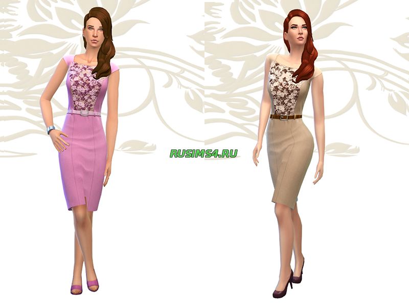 женское платье светло-коричневого цвета, так-же имеются другие варианты платья с разными цветами, платье средней длины, имеется коричневый ремешок, так-же на передней части платья, на груди имеется рисунок в виде цветков, рисунок такого же цвета как и само платье