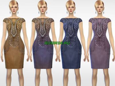 красивое женское платье, платье средней длинны, на этом платье вышиты белыми нитками различные узоры, имеется несколько цветов ткани из которой сделано платье, синий цвет, жёлтый и т.д., сзади платья имеется молния